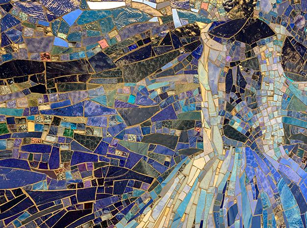 Katherine Bradford’s artwork reflects on the community that uses the 1 Av station. Her vibrant compositions, fabricated in glass mosaic by Mayer of Munich, are located in the north and south mezzanines near First Avenue, and in three of the newly opened staircases at the Avenue A end of the station.