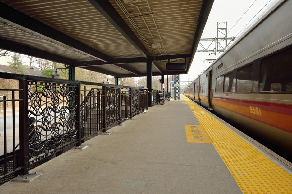 Home: Inside/Outside is inspired by the town of Pelham's early development by Benjamin Fairchild and Benjamin Corlies in 1896. Influenced by the historical time period, artist Loren Eiferman explored the idyllic concept of home, illustrating that home is anywhere and everywhere, including wherever you travel—even if it's a commute into Grand Central. The idealized notion of home is represented by period carpet-inspired designs in sectioned panels that are incorporated into the stations metal railings along the platforms.