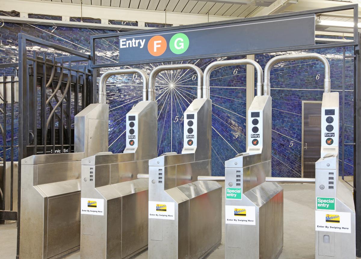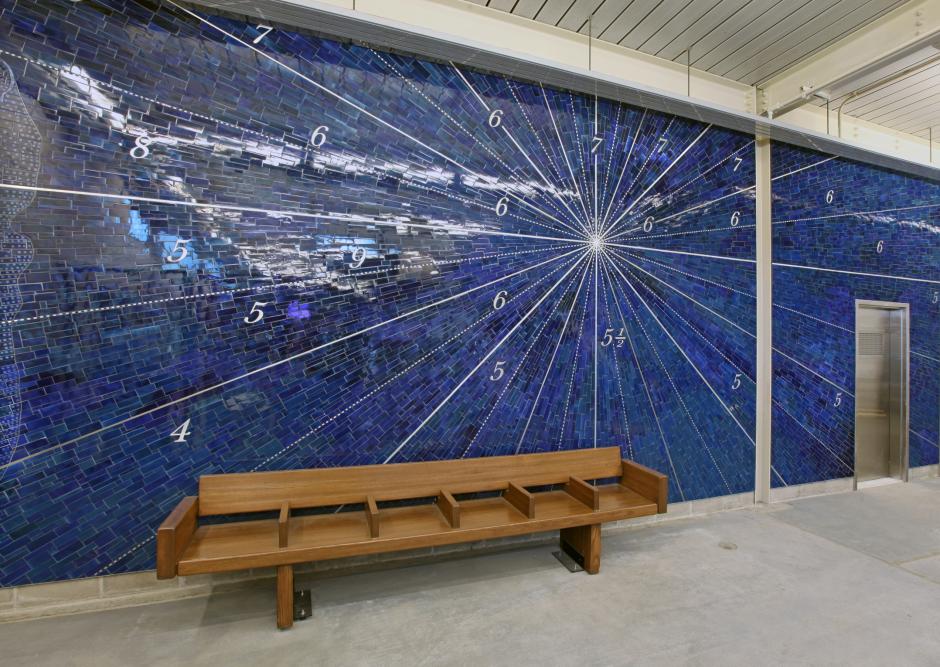 At the Smith-9 Sts Station, Alyson Shotz used the local maritime history of the surrounding Gowanus and Red Hook communities to create a series of windows and large wall mosaic artwork.