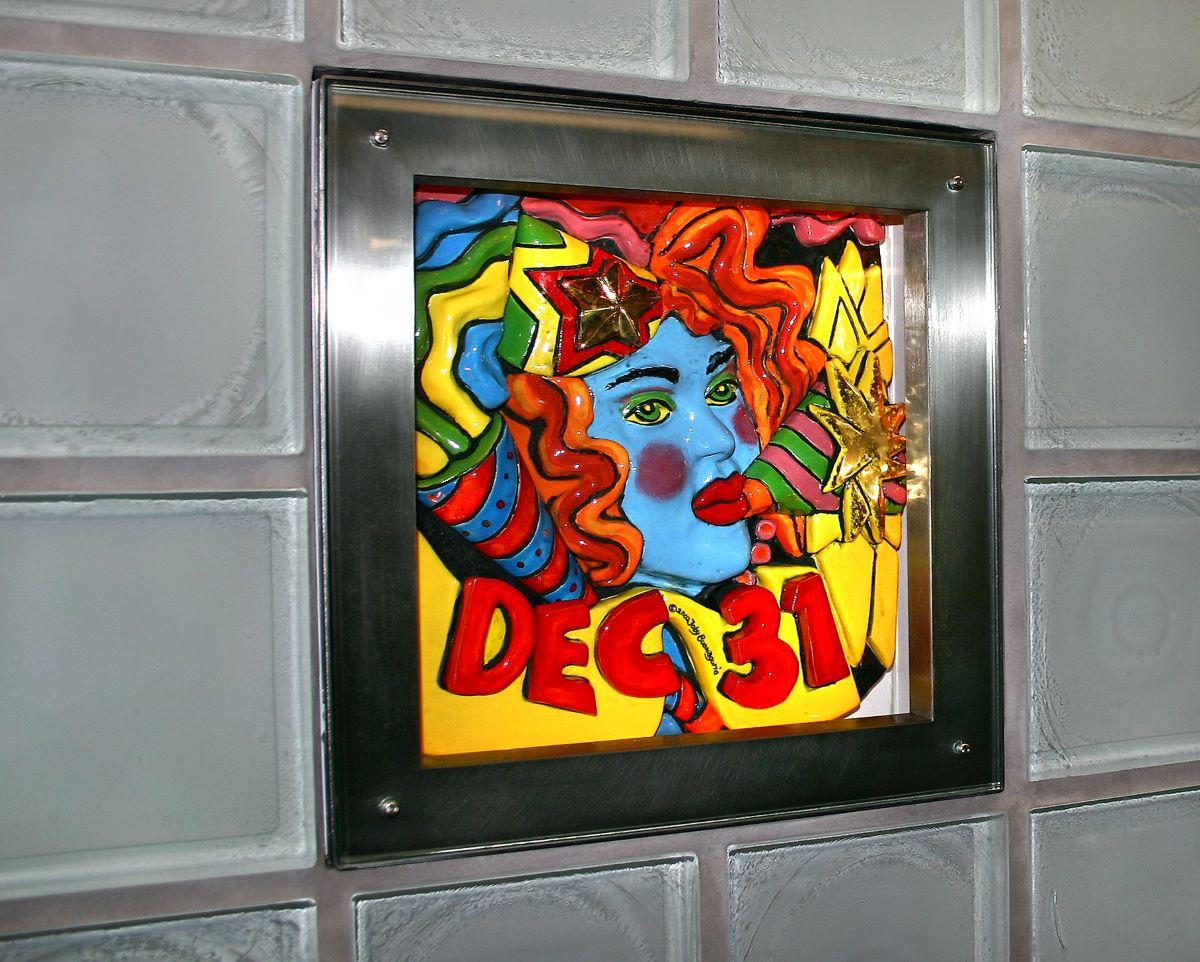 Think of Times Square and a variety of images, sights, sounds, and scents come to mind. Whatever they are, chances are you will find them in "Times Square: 35 Times," a series of artworks encased within glass blocks and set into the walls of the station. Toby Buonagurio conceived the work around three themes emblematic of the energetic vibrancy of midtown Manhattan: performing arts, fashion, and street life, all recognizable to both everyday passersby and the thousands of tourists who visit the city. The ceramics are installed in illuminated shadowboxes throughout the Times Square subway station complex.